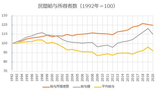 こんにちは、ぴよらん25周年です。さて、選挙も近づいてきました。 なぜかよく言われる言葉に「失われた30年」と言われています。 主な理由としては平均給与が増えないからだそうです。 実際どうなのか見てみましょう。民間給与実態統計調査結果|国税庁 民…